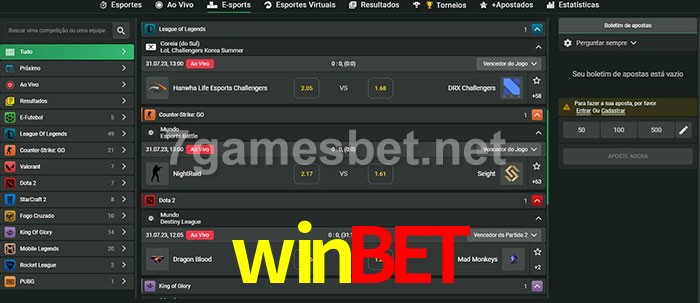 O winbet oferece uma grande seleção de opções de apostas em e-sports com probabilidades competitivas
